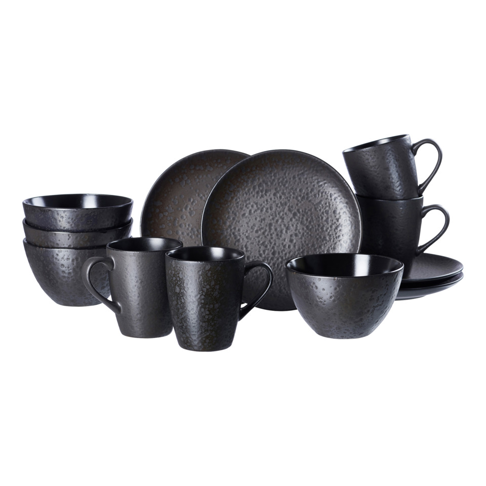 Smart & stylish: Beim kitwe Service fasziniert die Kombination aus Flächen mit gemasertem und solchen mit glattem Finish. Die Maserung, die sich während des Brennvorgangs auf Basis einer sogenannten Reaktivglasur individuell entwickelt, macht jedes Geschirrteil zu einem Unikat. Dank der Coupeform und dem seidenmatten Schwarzton punktet kitwe ganz nebenbei als zeitgemäßes Gourmet-Geschirr. Inhalt: 4 Speiseteller 28cm und 4 Schalen 20cm. Praktisch im Alltag, beeindruckend bei besonderen Anlässen und selbstverständlich spülmaschinen- sowie mikrowellengeeignet.
