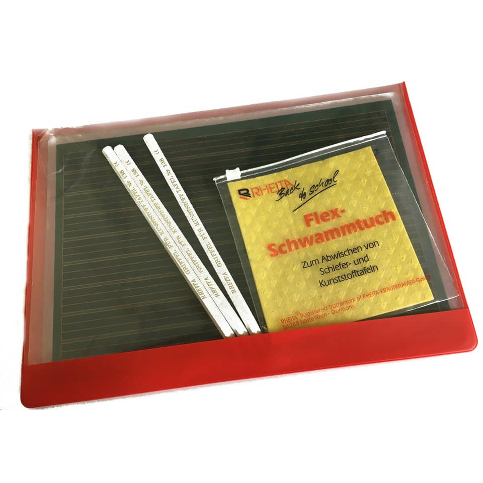 Rheita Kunststofftafelset (RHEITAFLEX) 6 teilig, Kunststofftafel 5600-2 liniert/kariert, 3 Spezialgriffel, Schwammtuch, Tafelschoner