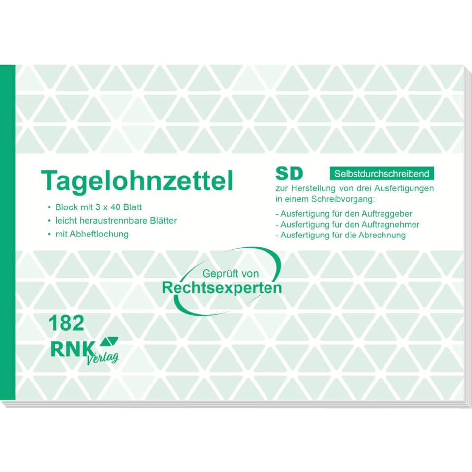 Tagelohnzettel – Block – SD, 3 x 40 Blatt, DIN A5 quer
