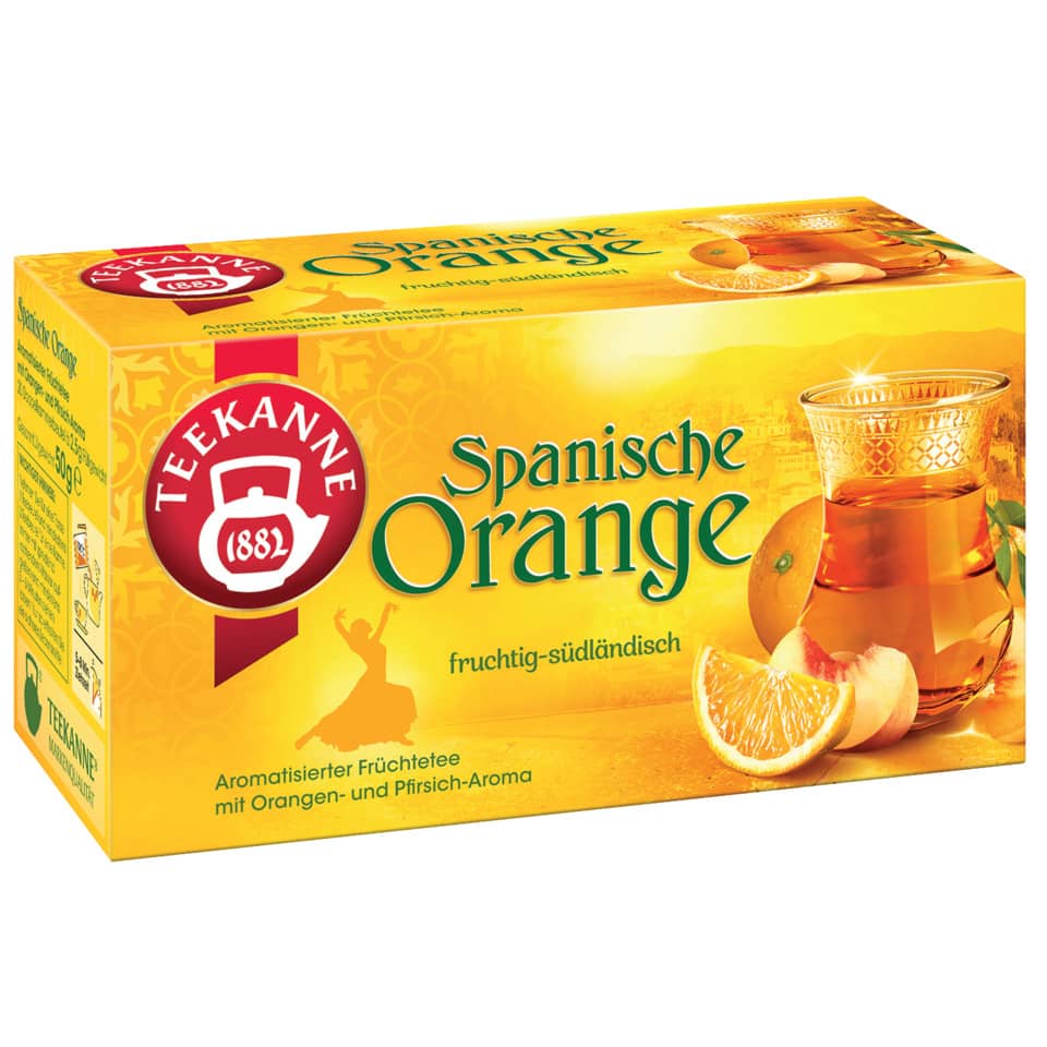 Spanische Orange die südländische Lebensfreude und lassen Sie sich vom berühmten spanischen Temperament mitreißen. Genießen Sie den süßen Geschmack von in der Sonne gereiften Orangen, abgerundet mit lecker-fruchtigem Pfirsicharoma. Genauso aufregend, wie das Land ist, schmeckt dieser Tee fruchtig und südländisch zugleich. Auch kalt getrunken ist TEEKANNE Spanische Orange die ideale Erfrischung für den ganzen Tag, nicht nur in der Siesta. Sorgfalt und schonende Verarbeitung machen diesen Genuss perfekt. 20 Doppelkammerbeutel à 2,5 g.
