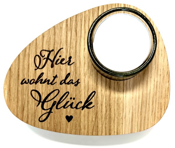 Teelicht Halterung aus Eiche 12 x 9,5cm geölt & graviert „Hier wohnt das Glück“