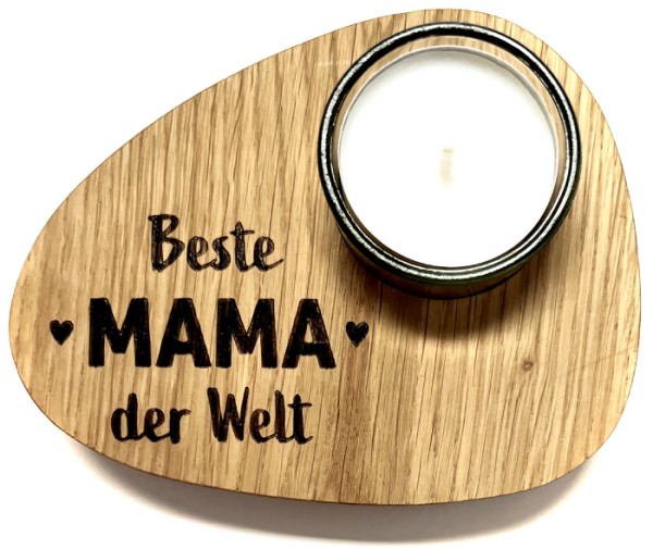 Beste Mama der Welt Teelicht Halterung aus Eiche 12 x 9,5cm geölt & graviert „Mama“