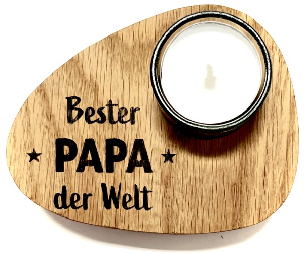 Bester Papa der Welt Teelicht Halterung aus Eiche 12 x 9,5cm geölt & graviert „Papa“
