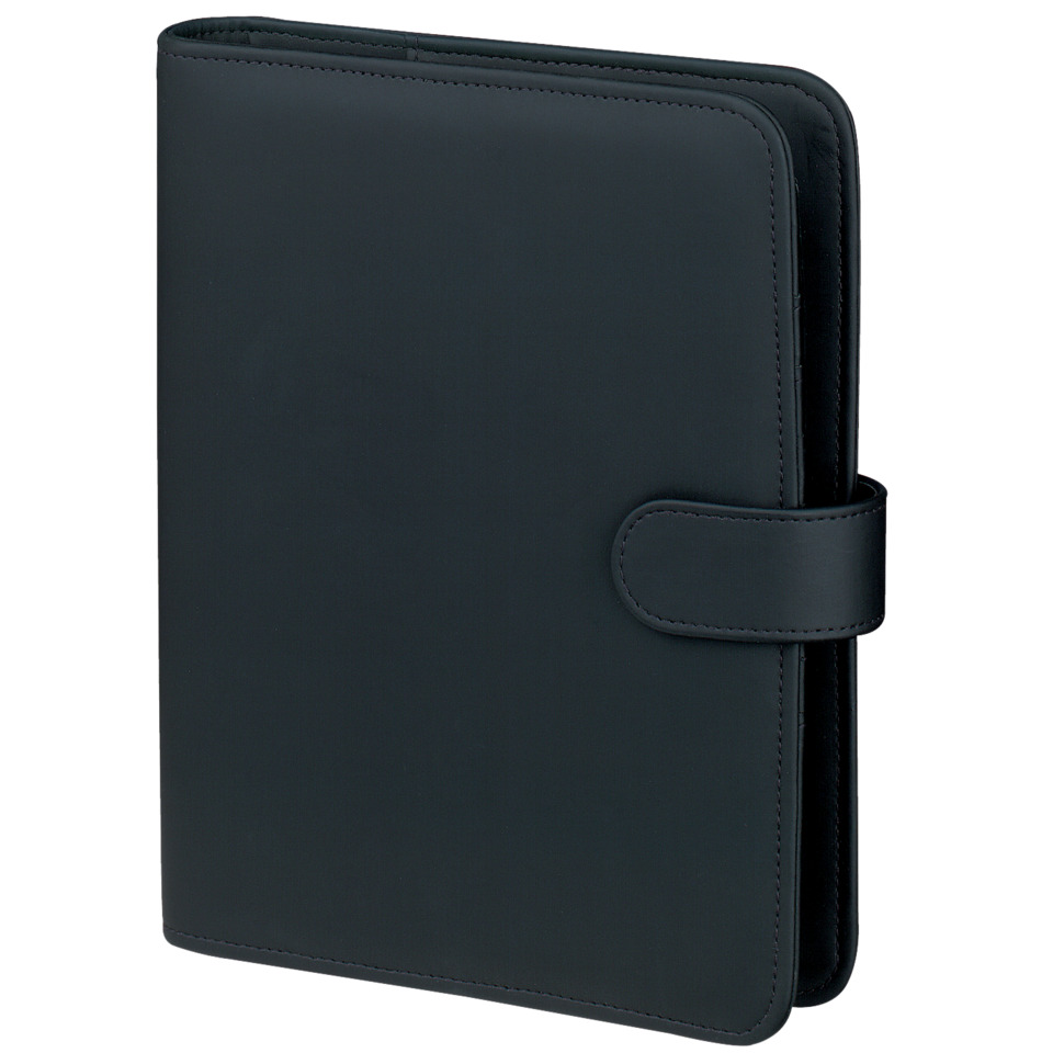 BSB Terminplaner Manager – A5, schwarz, Kunsstoff. Inhalt: Deckblatt mit rückseitigern Platz für private Daten, Lineal, 5teiliges Datei-Register, 8teiliges ABC-Register, Jahresübersicht, Kalender, 1 Woche = 2 Seiten, Notizen (liniert), Projekte (kariert), Infothek, Geburts- und Festtage, Adresssen/Telefon, Sichthülle für Visitenkarten. Format geschlossen: ca. 19 x 24 x 4 cm.