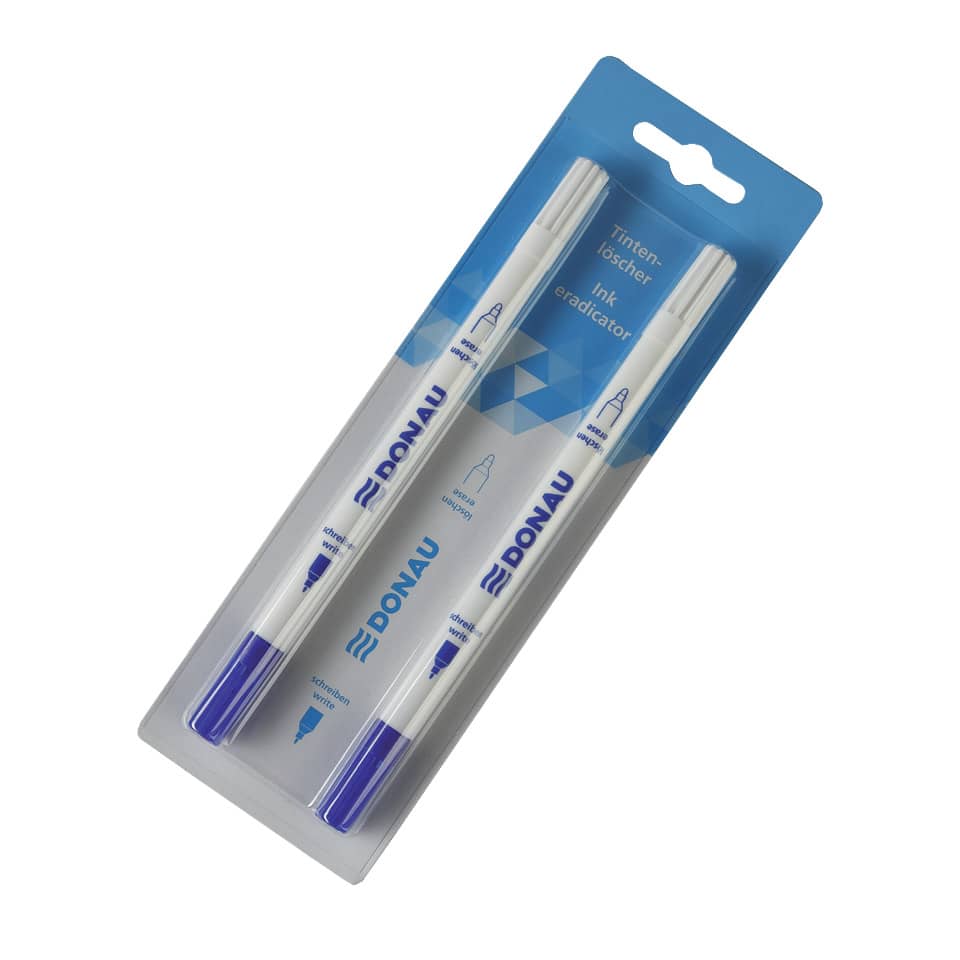 Tintenlöschstift, doppelseitig. Mit breiter Löschspitze und feiner Spitze zum Überschreiben. Packung mit 2 Stück.