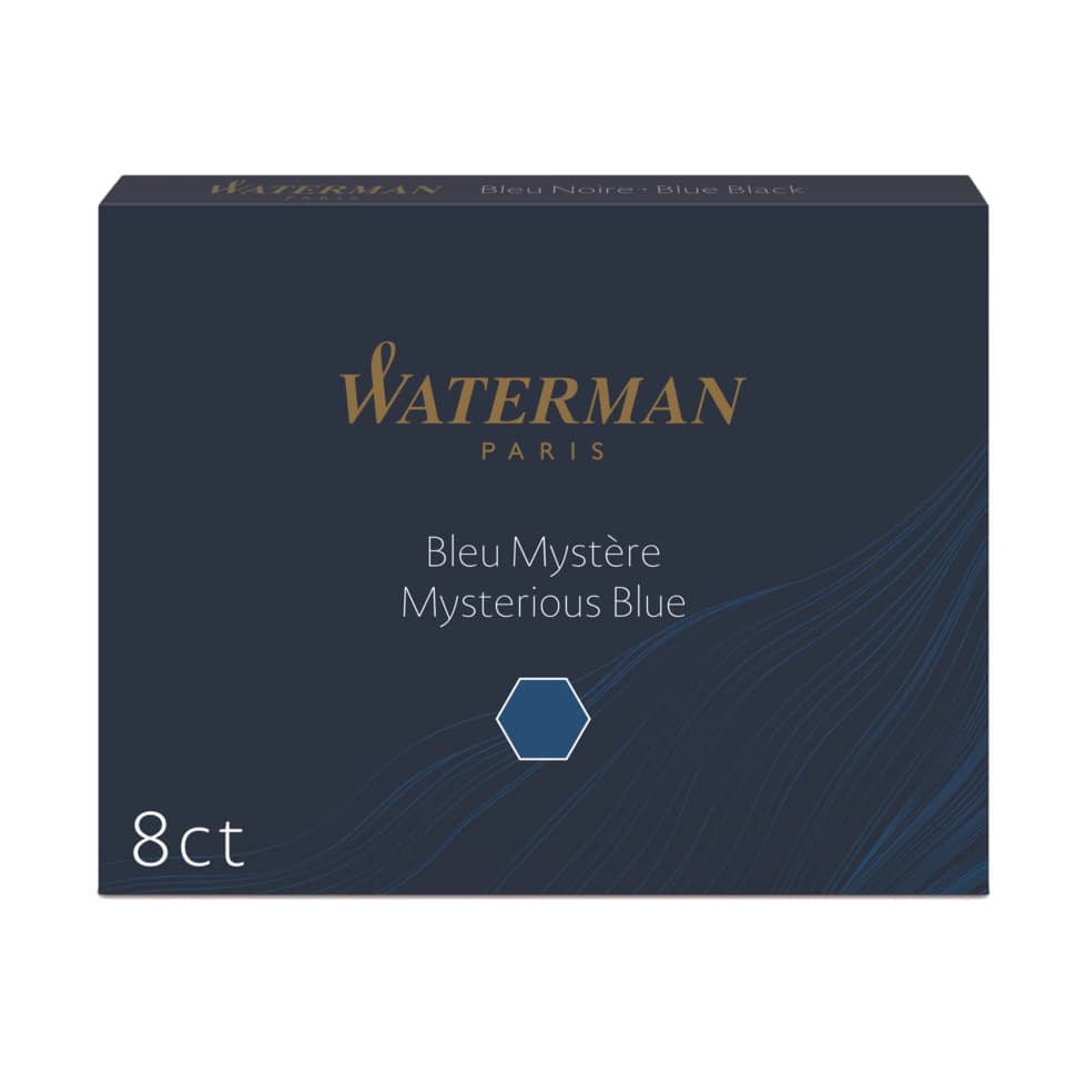 Die Tinte, die Sie für Ihr Waterman Schreibgerät auswählen, hinterlässt einen bleibenden Eindruck. Sie verleiht Ihrer Handschrift Individualität und einen unverkennabren, einzigartigen Akzent. Waterman rüstet seine Schreibgeräte immer mit hochwertigen Tinten aus, um die beste Leistung und den höchsten Schreibkomfort zu gewährleisten. Die fesselnde Farbpalette der Waterman Tinten unterstreicht Ihren persönlichen Stil und hebt Sie von der Masse ab. Tintenpatrone für Füllhalter. Verwendung für Produkt: geeignet für alle Waterman Füllfederhalter. Typbezeichnung der Tintenpatrone: Standard Großraum-Tintenpatrone. Farbe: blauschwarz. Ausführung des Inhalts mit Packung: 8 Stück in der Schachtel.