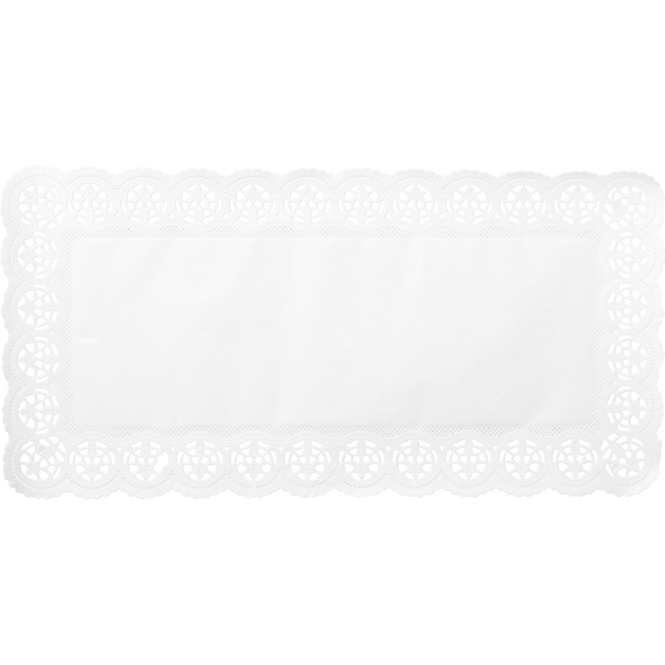 Eckige Tortenspitzen in der Farbe Weiß mit gestanztem Rand, für eine bessere Warenpräsentation in Konditoreien, am Buffet oder an der Kaffeetafel.