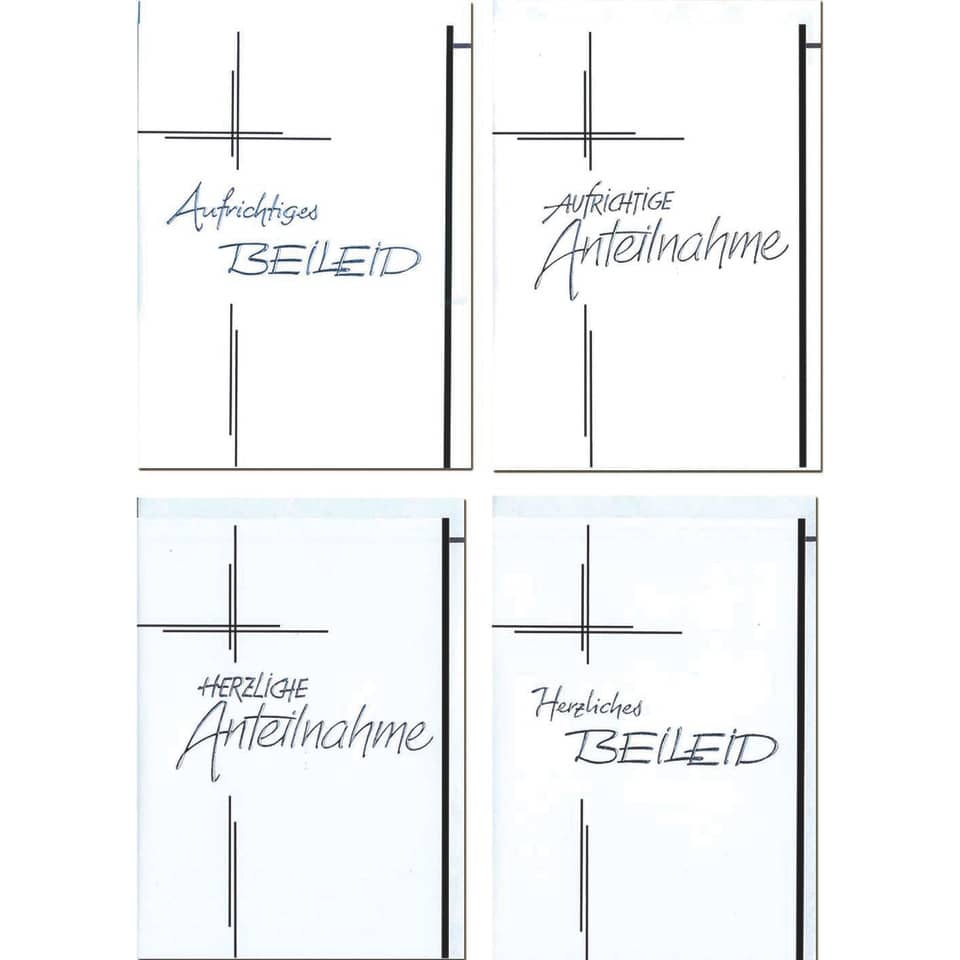 Hochwertige Trauerkarten inklusive Umschläge. Mindestabnahmemenge – 10 Stück.