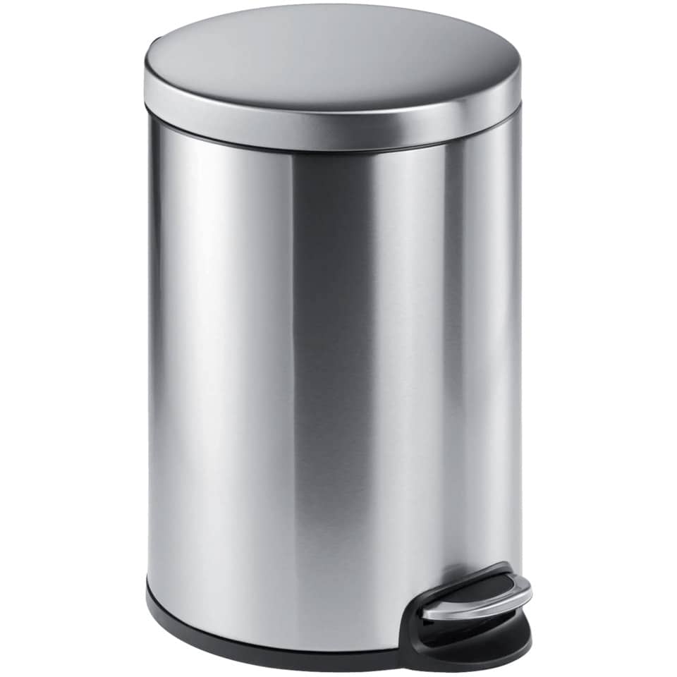 Treteimer. Material und Form: Edelstahl, rund. Anzahl der Sortierfächer: 1. Ausstattung: Deckel vorhanden. Mit Fingerprint-Proof Beschichtung, herausnehmbarer Innen-Eimer mit Henkel, geräuschloses Schließen des Deckels, sicherer Stand und Korrosionsschutz durch umlaufenden Kunststoffsockel, integrierter Tragegriff am Deckelscharnier. Durchmesser: 292 mm. Höhe: 455 mm. Tiefe: 360 mm. Volumen: 20 l. Farbe: metallic silber.