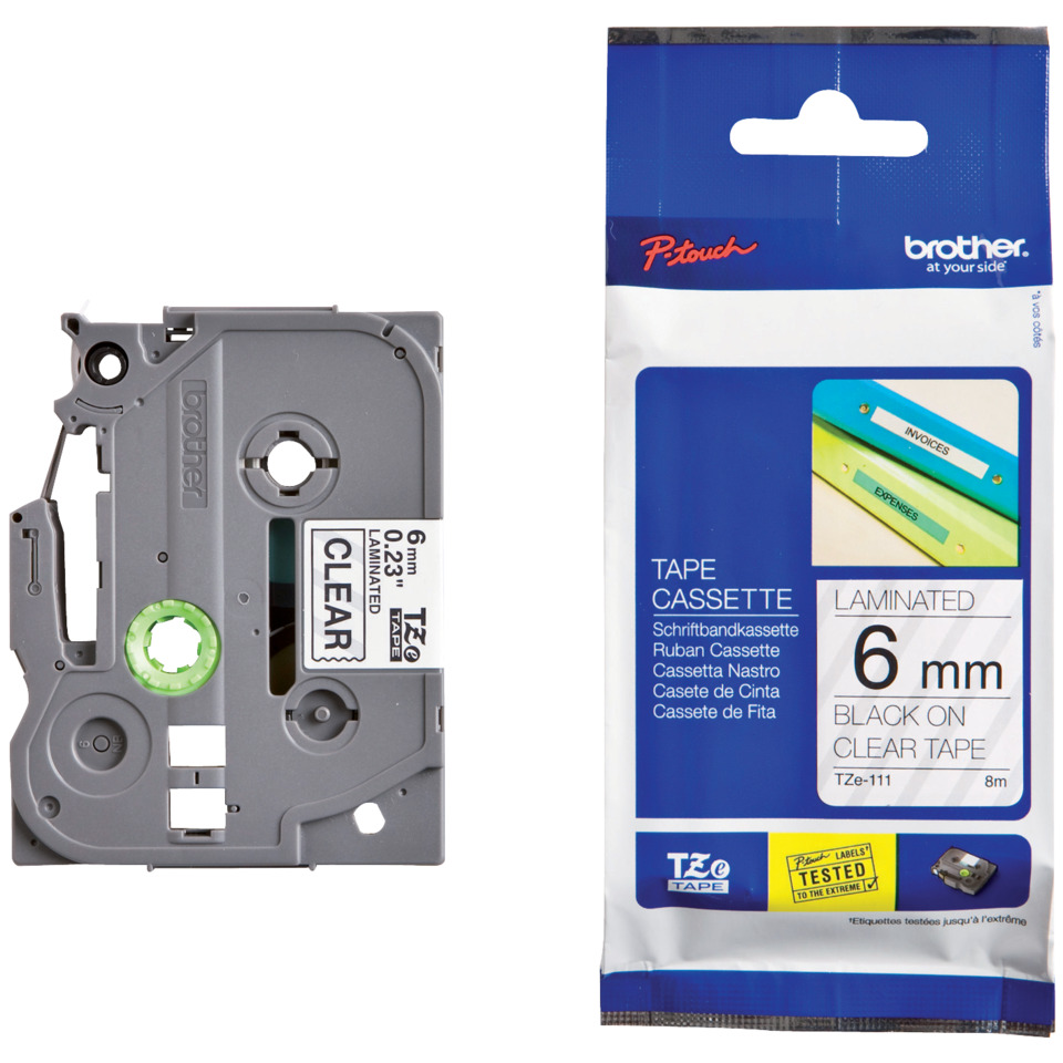 Für Beschriftungsgeräte P-Touch 1000, P-Touch 1000 BTS, P-Touch 1000 F, P-Touch 1005 BTS, P-Touch 1005 F, P-Touch 1005 FB, P-Touch 1010, P-Touch 1080, P-Touch 1090, P-Touch 1200, P-Touch 1200 P, P-Touch 1230 PC, P-Touch 1250, P-Touch 1250 J, P-Touch 1250 LB, P-Touch 1250 S, P-Touch 1250 VP, P-Touch 1250 VPS, P-Touch 1260 VP, P-Touch 1280, P-Touch 1280 CB, P-Touch 1280 DT, P-Touch 1280 VP, P-Touch 1290, P-Touch 1290 DT, P-Touch 1290 VP, P-Touch 1750, P-Touch 18 R, P-Touch 1800, P-Touch 1800 E, P-Touch 1830 VP, P-Touch 1850, P-Touch 1850 CC, P-Touch 1850 VP, P-Touch 1950 VP, P-Touch 200, P-Touch 2030 VP, P-Touch 210 E, P-Touch 2100 VP, P-Touch 220, P-Touch 2400, P-Touch 2400 E, P-Touch 2420 PC, P-Touch 2430 PC, P-Touch 2450, P-Touch 2450 CC, P-Touch 2450 DX, P-Touch 2460, P-Touch 2470, P-Touch 2480, P-Touch 2500 PC, P-Touch 2700 VP, P-Touch 2730 VP, P-Touch 300, P-Touch 300 SP, P-Touch 310, P-Touch 310 CC, P-Touch 310 Series, P-Touch 340, P-Touch 340 C, P-Touch 340 Series, P-Touch 350, P-Touch 3600, P-Touch 540, P-Touch 540 C, P-Touch 540 Series, P-Touch 550, P-Touch 7100 VP, P-Touch 7500 VP, P-Touch 7600 VP, P-Touch 900, P-Touch 900 BTS, P-Touch 900 F, P-Touch 9200 DX, P-Touch 9200 PC, P-Touch 9200 Series, P-Touch 9400, P-Touch 9500 PC, P-Touch 9600, P-Touch 9700 PC, P-Touch 9800 PCN, P-Touch D 200, P-Touch D 200 BW, P-Touch D 200 BWVP, P-Touch D 200 Series, P-Touch D 200 VP, P-Touch D 400 VP, P-Touch D 450 VP, P-Touch D 600 VP, P-Touch E 100, P-Touch E 100 Series, P-Touch E 100 VP, P-Touch E 300 VP, P-Touch E 500 VP, P-Touch E 550 W VP, P-Touch GL 100, P-Touch GL 1000, P-Touch GL 200, P-Touch H 100, P-Touch H 100 LB, P-Touch H 100 R, P-Touch H 100 Series, P-Touch H 101 LB, P-Touch H 101 TB, P-Touch H 105, P-Touch H 300, P-Touch H 300 Li, P-Touch H 300 Series, P-Touch H 500, P-Touch H 500 Li, P-Touch H 500 Series, P-Touch H 75, P-Touch H 75 S, P-Touch P 700, P-Touch P 750 W, P-Touch RL 700 S. Für P-touch entwickeltes, 6 mm breites, schwarz auf farblos laminiertes und 8 m langes TZe-Schriftband. Brother p-touch TZ-E Schriftbänder sind extrem haltbar und sehr strapazierfähig. Durch ihren Aufbau aus 6 Schichten und eine Laminierung sind sie abriebfest, wasserfest, lichtbeständig, resistent gegen die meisten Chemikalien und extrem temperaturbeständig. Sehr hohe Temperaturbeständigkeit von -80 Grad bis +150 Grad C. Extrem wisch-, kratz- und wetterfest. Größe: 6 mm x 8 m. Druckfarbe: schwarz. Schriftbandfarbe: farblos.