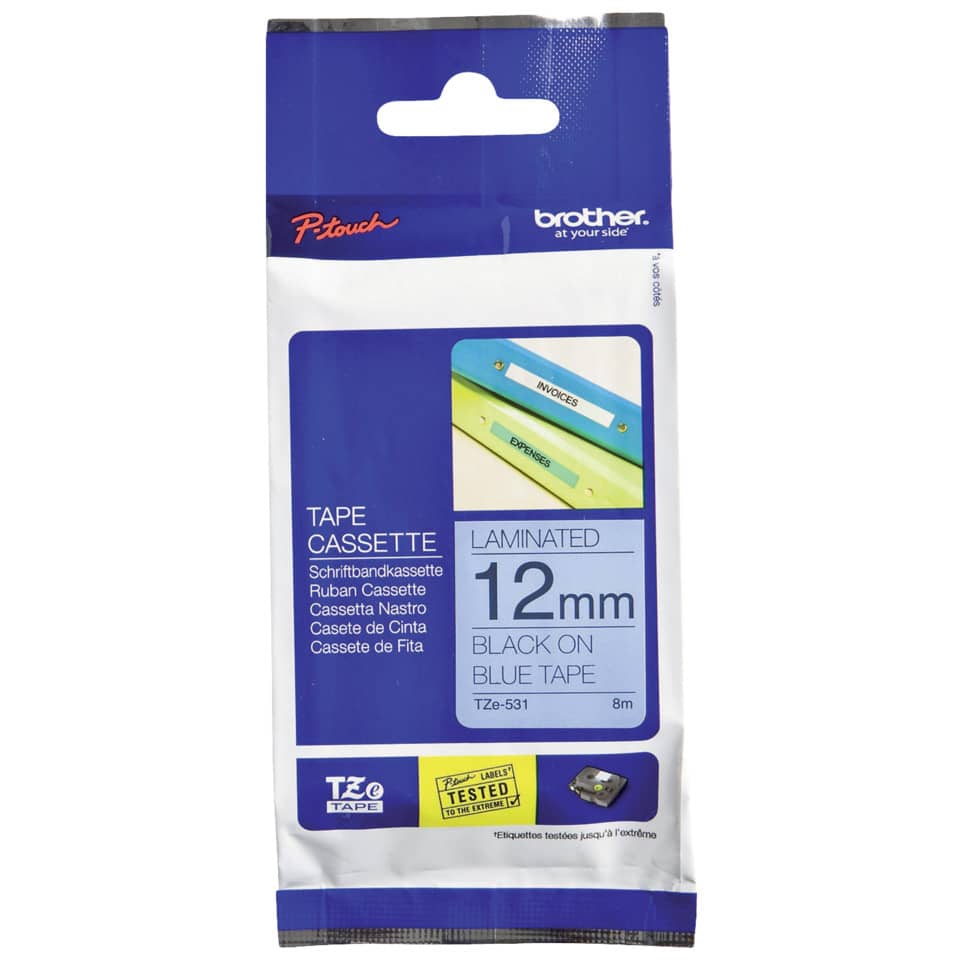 Für Beschriftungsgeräte P-Touch 1000, P-Touch 1000 BTS, P-Touch 1000 F, P-Touch 1005 BTS, P-Touch 1005 F, P-Touch 1005 FB, P-Touch 1010, P-Touch 1080, P-Touch 1090, P-Touch 1200, P-Touch 1200 P, P-Touch 1230 PC, P-Touch 1250, P-Touch 1250 J, P-Touch 1250 LB, P-Touch 1250 S, P-Touch 1250 VP, P-Touch 1250 VPS, P-Touch 1260 VP, P-Touch 1280, P-Touch 1280 CB, P-Touch 1280 DT, P-Touch 1280 VP, P-Touch 1290, P-Touch 1290 DT, P-Touch 1290 VP, P-Touch 1750, P-Touch 18 R, P-Touch 1800, P-Touch 1800 E, P-Touch 1830 VP, P-Touch 1850, P-Touch 1850 CC, P-Touch 1850 VP, P-Touch 1950 VP, P-Touch 200, P-Touch 2030 VP, P-Touch 210 E, P-Touch 2100 VP, P-Touch 220, P-Touch 2400, P-Touch 2400 E, P-Touch 2420 PC, P-Touch 2430 PC, P-Touch 2450, P-Touch 2450 CC, P-Touch 2450 DX, P-Touch 2460, P-Touch 2470, P-Touch 2480, P-Touch 2500 PC, P-Touch 2700 VP, P-Touch 2730 VP, P-Touch 300, P-Touch 300 SP, P-Touch 310, P-Touch 310 CC, P-Touch 310 Series, P-Touch 340, P-Touch 340 C, P-Touch 340 Series, P-Touch 350, P-Touch 3600, P-Touch 540, P-Touch 540 C, P-Touch 540 Series, P-Touch 550, P-Touch 7100 VP, P-Touch 7500 VP, P-Touch 7600 VP, P-Touch 900, P-Touch 900 BTS, P-Touch 900 F, P-Touch 9200 DX, P-Touch 9200 PC, P-Touch 9200 Series, P-Touch 9400, P-Touch 9500 PC, P-Touch 9600, P-Touch 9700 PC, P-Touch 9800 PCN, P-Touch D 200, P-Touch D 200 BW, P-Touch D 200 BWVP, P-Touch D 200 Series, P-Touch D 200 VP, P-Touch D 400 VP, P-Touch D 450 VP, P-Touch D 600 VP, P-Touch E 100, P-Touch E 100 Series, P-Touch E 100 VP, P-Touch E 300 VP, P-Touch E 500 VP, P-Touch E 550 W VP, P-Touch GL 100, P-Touch GL 1000, P-Touch GL 200, P-Touch H 100, P-Touch H 100 LB, P-Touch H 100 R, P-Touch H 100 Series, P-Touch H 101 LB, P-Touch H 101 TB, P-Touch H 105, P-Touch H 300, P-Touch H 300 Li, P-Touch H 300 Series, P-Touch H 500, P-Touch H 500 Li, P-Touch H 500 Series, P-Touch H 75, P-Touch H 75 S, P-Touch P 700, P-Touch P 750 W, P-Touch RL 700 S. Für P-touch entwickeltes, 12 mm breites, schwarz auf blau laminiertes und 8 m langes TZe-Schriftband. Brother p-touch TZ-E Schriftbänder sind extrem haltbar und sehr strapazierfähig. Durch ihren Aufbau aus 6 Schichten und eine Laminierung sind sie abriebfest, wasserfest, lichtbeständig, resistent gegen die meisten Chemikalien und extrem temperaturbeständig. Sehr hohe Temperaturbeständigkeit von -80 Grad bis +150 Grad C. Extrem wisch-, kratz- und wetterfest. Größe: 12 mm x 8 m. Druckfarbe: schwarz. Schriftbandfarbe: blau.