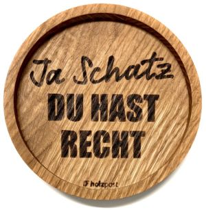 Ja Schatz du hast Recht Untersetzer aus Eiche “ Ja Schatz“ graviert & geölt D 11,2cm