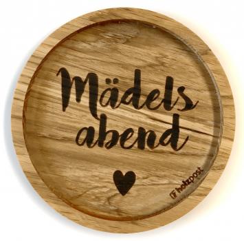 Untersetzer aus Eiche „Mädelsabend“ graviert & geölt D 11,2cm
