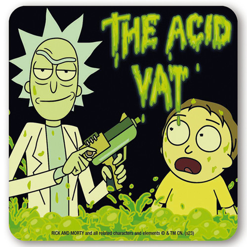 Länge: 10.00cm Breite: 10.00cm Höhe: 0.40cm Material: Korkboden Dieser laminierte Untersetzer hat eine schwarze Kante und einen Korkboden. Untersetzer Rick and Morty The Acid Vat