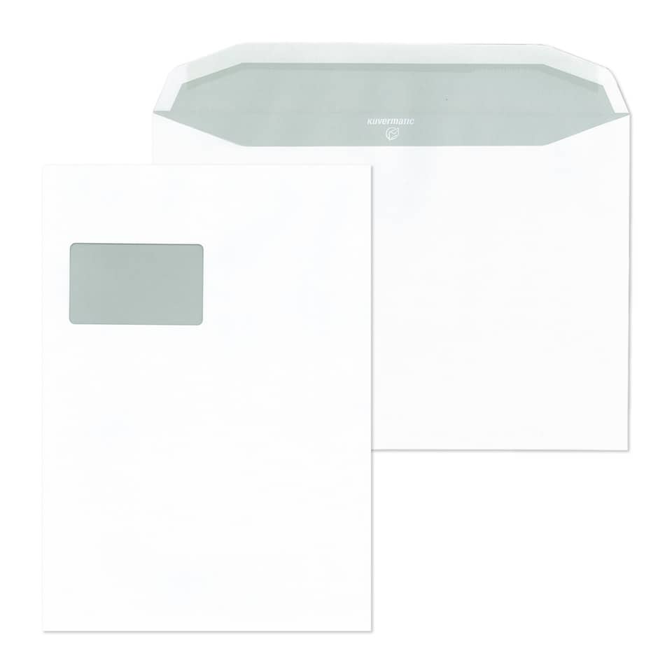 Versandtasche C4, mit Fenster, nassklebend, 100 g/qm, weiss
