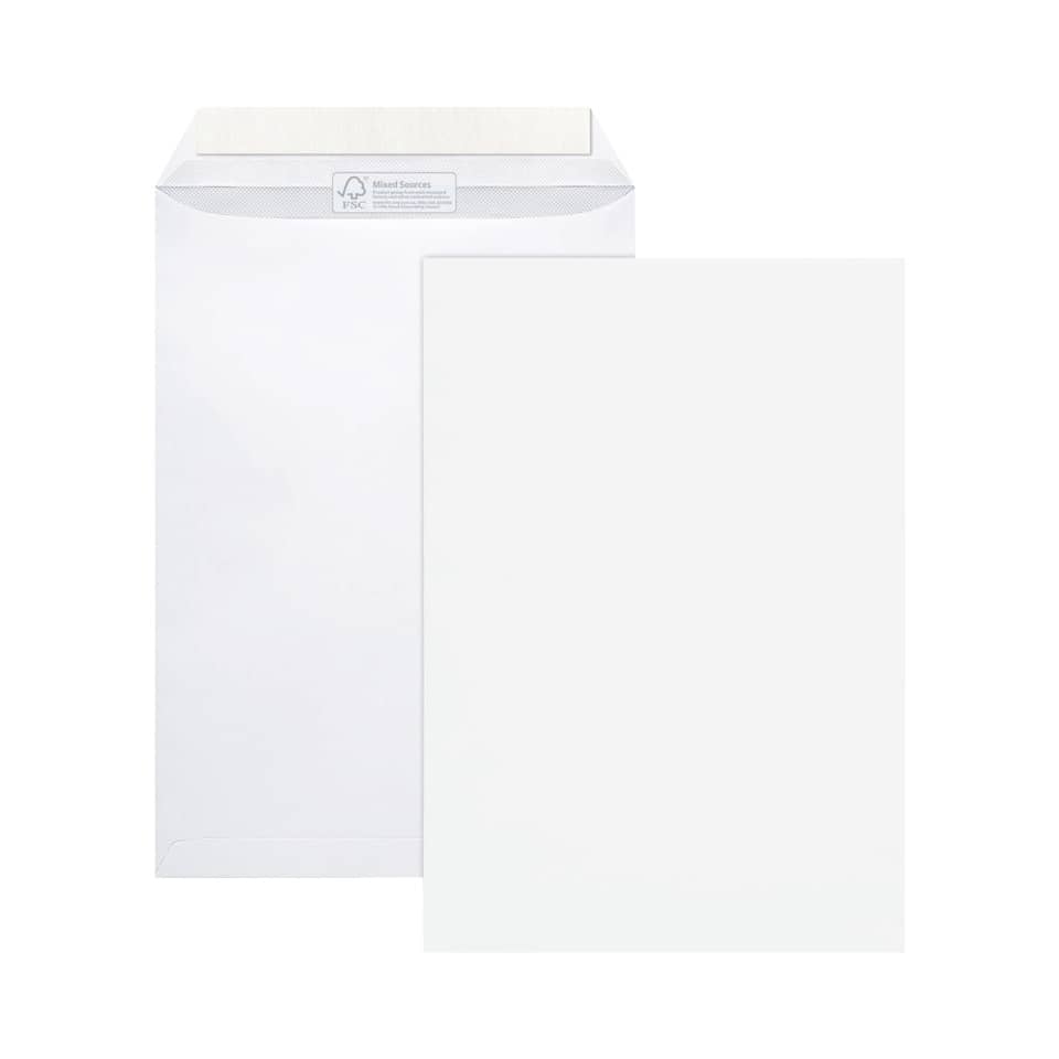 Die umweltfreundlichen Versandtaschen aus verantwortungsvoller, nachhaltiger Forstwirtschaft. Klebeart haftklebend. Farbe: weiß. Größe: 229 x 324 mm.