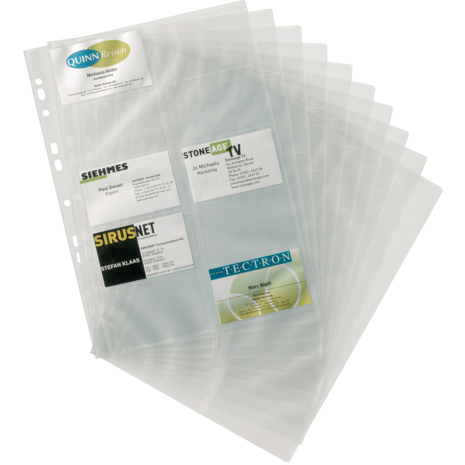 DURABLE VISITENKARTENHÜLLEN DIN A4, transparent. 10 Visitenkartenhüllen für 200 Visitenkarten im Format 90 x 57 mm. Erweiterungssatz für Art.-Nr.: 2384, 2388 und 2409. Passend für alle Ringbücher und Ordner in DIN A4. Produktdetails: Inhalt: 10 Stk.