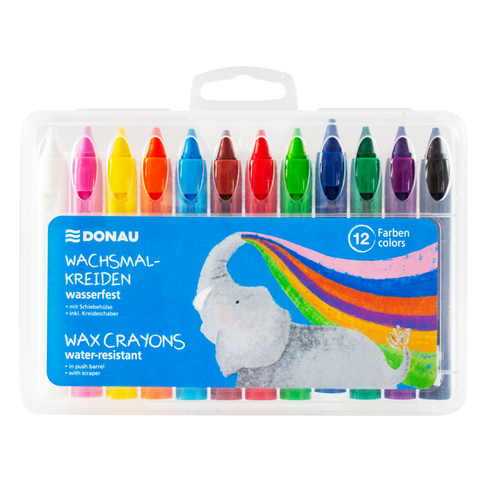 Das Wachsmalstiftetui enthält 12 wasserfeste, farbige Wachsmalkreiden, die sich perfekt für kreative Kunstwerke eignen. Die Kreiden kommen in einer praktischen Schiebehülse und lassen sich bequem aufbewahren und entnehmen. Inklusive Kreideschaber für noch mehr kreative Möglichkeiten.