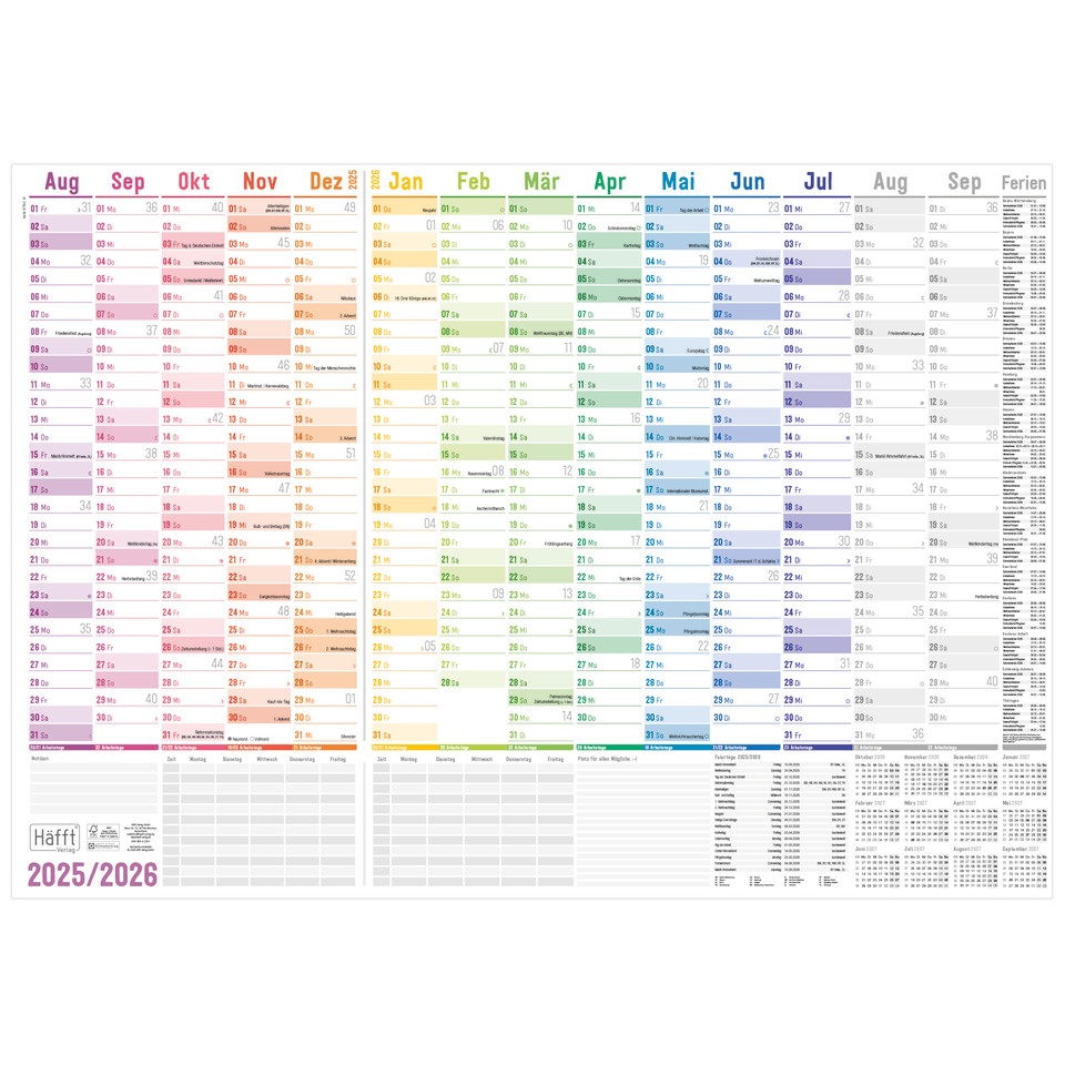 Der beeindruckender Wandkalender im großzügigen Querformat (89×63 cm) ist der perfekte Begleiter für Klassenzimmer, Jugendzimmer oder Lehrerzimmer! Mit einer Laufzeit von 14 Monaten, von August 2025 bis September 2026, bietet er eine übersichtliche Monats- und Jahresansicht. Der Kalender enthält alle Ferientermine und Feiertage, sodass Sie stets den Überblick behalten. Zusätzlich sind zwei Stundenpläne integriert, die eine einfache Organisation Ihres Schul- oder Arbeitstags ermöglichen. Hergestellt aus hochwertigem 140g/m² Papier, garantiert dieser Kalender eine lange Lebensdauer und eine ansprechende Optik.