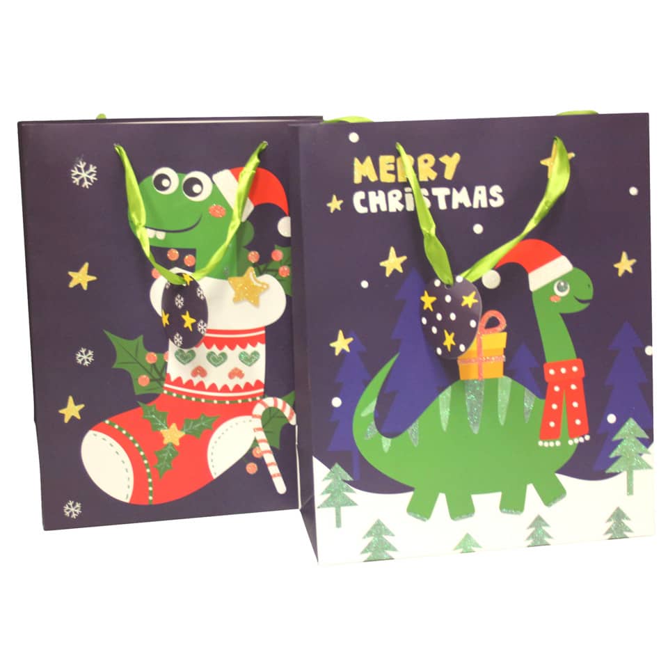 Mit Geschenktaschen sind die Weihnachtsgeschenke für Ihre Freunde und Liebsten schön verpackt und das ganz schnell und einfach! 2 Kindermotive Weihnachtsdino sortiert, mit Glitter.