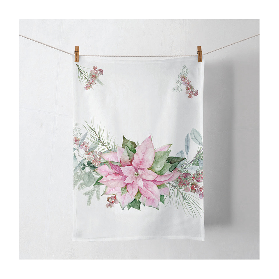 Das Geschirrtuch aus 100 % Baumwolle besticht durch ein elegantes Weihnachtsstern-Design und eine praktische Größe von 50×70 cm.