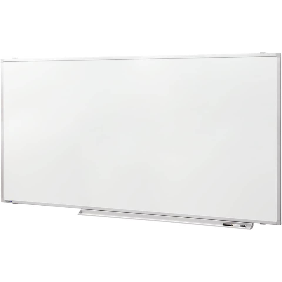 Whiteboard PROFESSIONAL. Hochwertige kratzfeste Email-Oberfläche. Aluminiumrahmen, hellgrauen Kunststoffecken. Ablageschale vorhanden. Montagesatz. Größe (B x H): 180 x 90 cm.