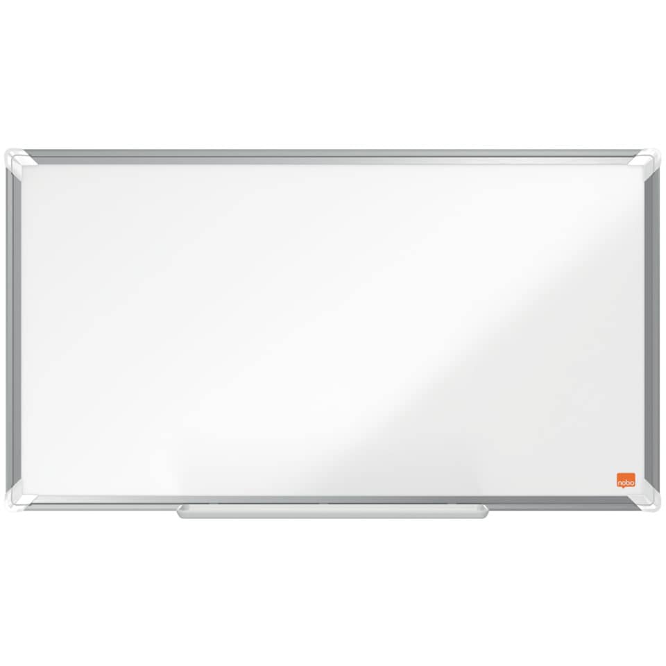 nobo® Whiteboard Premium Plus Stahl NanoClean Widescreen 32″. Magnetisch. Beschreibbar. Gute Löscheigenschaften. Gute Widerstandsfähigkeit gegen Farbflecken, Stifteflecken, Kratzer und Dellen. Mit abnehmbarer Stifteablage aus Aluminium. Befestigung über Eckmontage. Lieferung inklusive Befestigungselemente und nobo®-Marker. Reinigung: trocken/feucht. Oberfläche/Material: lackierter Stahl. Rahmen: Aluminium. Format: 71 x 40 cm. Farbe: weiß.