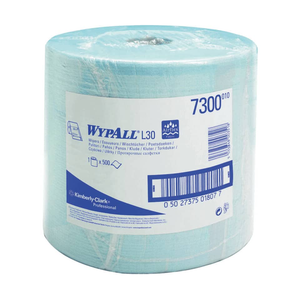 Die professionellen WypAll® Wischtücher wurden für die speziellen Umgebungen entwickelt, in denen sie verwendet werden, und unterstützen Sie stets bei Ihren Reinigungsaufgaben. Diese Jumborolle mit blauen, 2-lagigen WypAll Reinigungstüchern für Reinigung und Wartung ist vielseitig und groß. WypAll Papierwischer wurden für eine Vielzahl von Reinigungs- und Wartungsarbeiten entwickelt. Diese blaue Papierrolle eignet sich perfekt für den Einsatz in Prozessumgebungen. Die einzigartige Airflex-Technologie sorgt für außergewöhnliche Festigkeit und Saugfähigkeit der Putztücher. Die blaue Rolle ist kompatibel mit den Kimberly-Clark Jumborollenspender zur Wand- und mit Bodenmontage (6146, 6154 und 6155). Die Abmessungen eines Papiertuchs betragen 38cm (L) x 23,5cm (B).