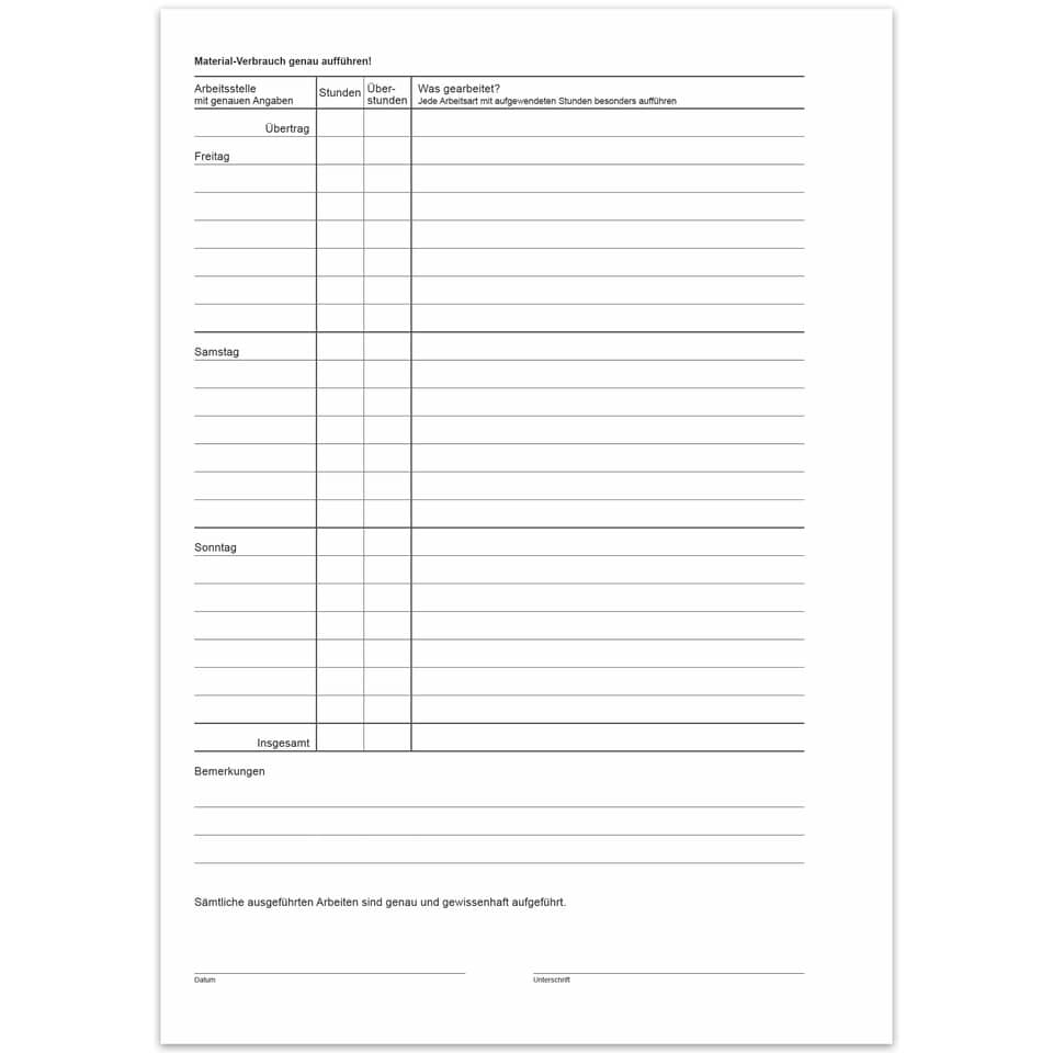 Dieser extra große Wochenzettel erfasst die Arbeitsstelle, die Arbeitszeit und die geleistete Arbeit eines Arbeiters von Montag bis Sonntag und bietet Platz für allgemeine Notizen und Hinweise, ausreichend für sieben Tage mit Gesamtstunden je Woche.