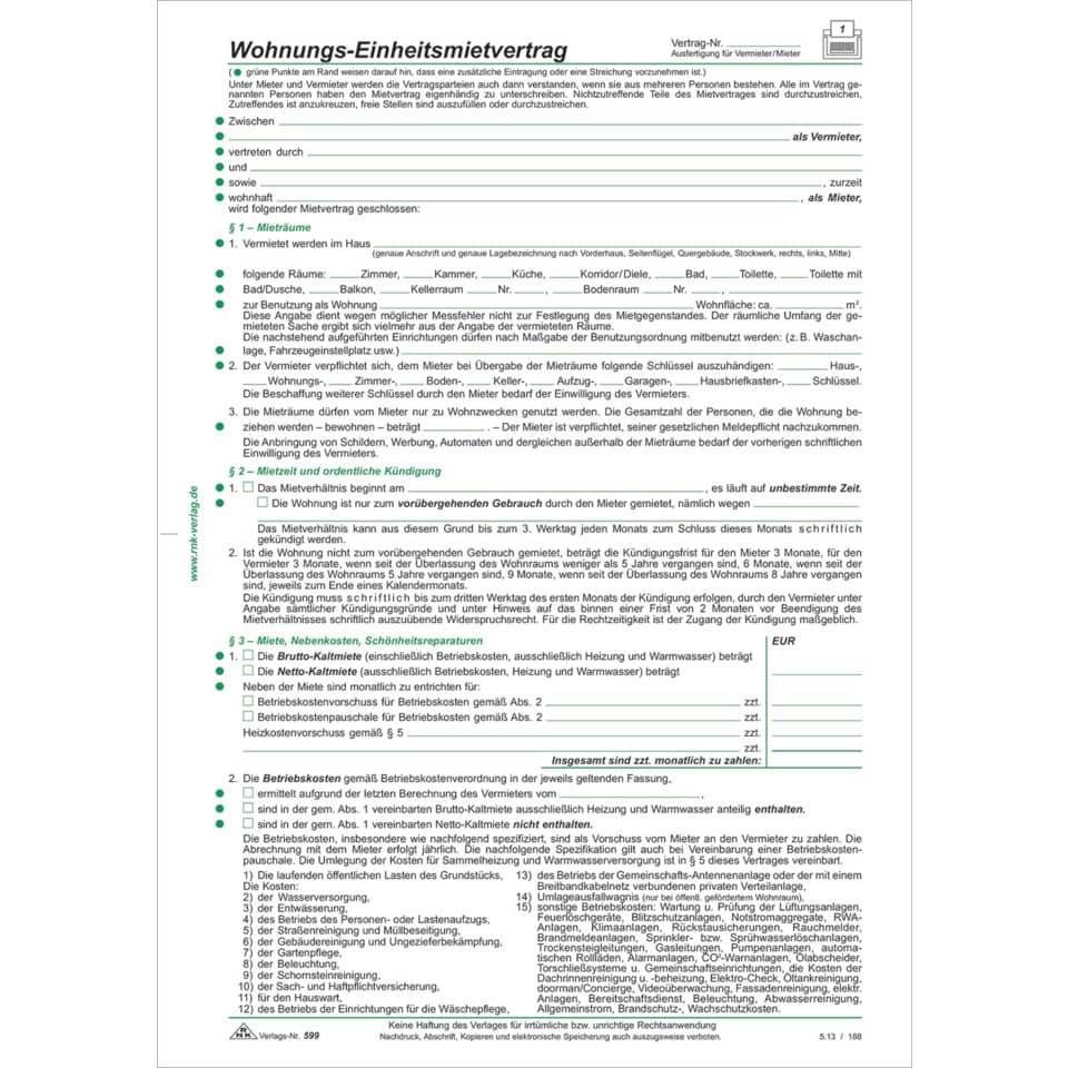 Dieser Mietvertrag eignet sich zur unbefristeten Vermietung von Wohnraum -auch Eigentumswohnungen.