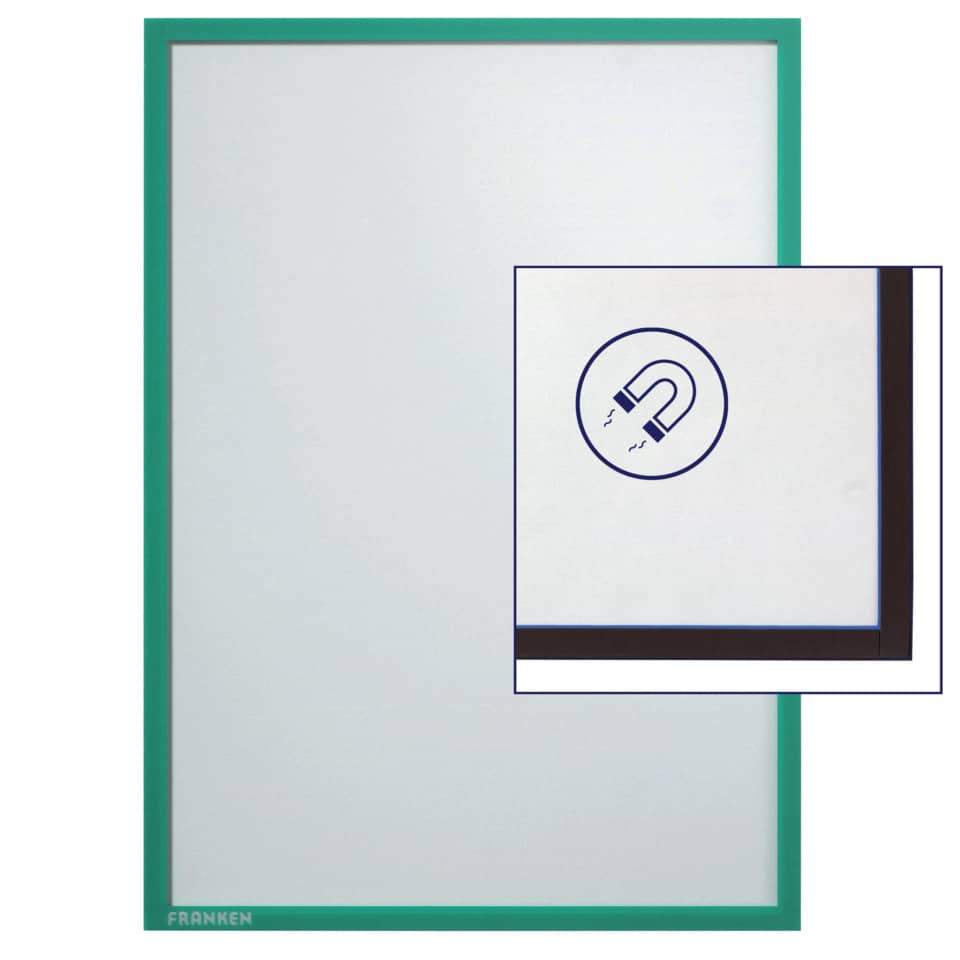 FRANKEN Dokumentenhalter Xtra!Line magnetisch. Für DIN A4. Für die Präsentation und Hervorhebung von Notizen. Auf drei Seiten der Rückseite mit Magnetstreifen. Schneller Austauchs von Dokumenten durch die offene Rückseite. Matt, dokumentenecht. Mit Papiereinlage. Auf drei Seiten der Rückseite mit Magnetstreifen. Mit farbigem Rand. Material: Hartfolie, 0.32 mm. Format: 250 x 320 x 2 mm. Farbe: grün.