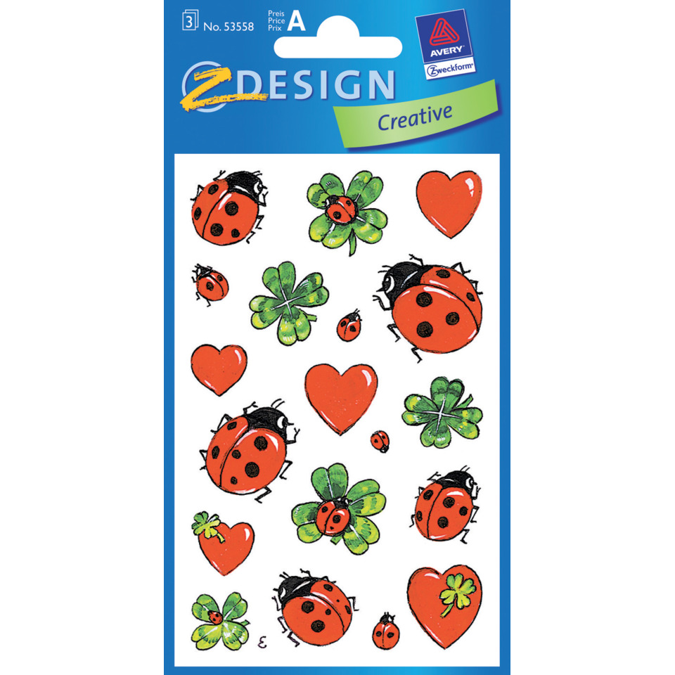 Einfach kreativ sein mit tollen Stickern! Mit den wunderschönen und farbenfrohen Papieraufklebern von Z-Design zaubern Sie ein Lächeln auf Gesichter. Nicht nur Kinder werden sich über die süßen Glücks Sticker mit Kleeblättern und Marienkäfer zum Spielen, Basteln und Sammeln freuen. Dekorieren Sie auch Briefe, Einladungen, Geschenke, Freundschaftsbücher und Poesiealben mit den süßen Marienkäfer- und Kleeblatt Aufklebern. Die selbstklebenden Schmucketiketten zum Gestalten und Dekorieren aus dem Hause AVERY ZWECKFORM sind natürlich aus geprüfter Top-Qualität, die kindersicheren Klebeetiketten werden regelmäßig extern kontrolliert und bestätigt.