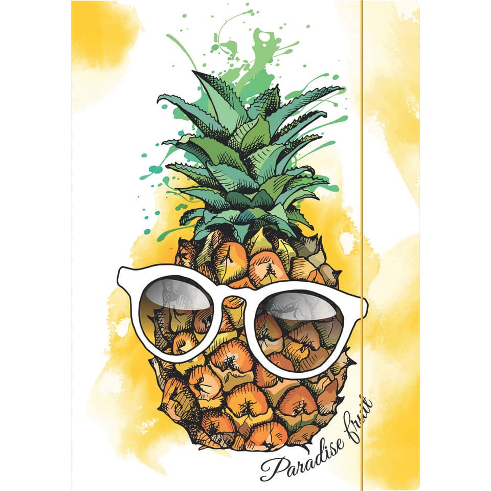 Die Zeichenmappe aus Chromo-Duplexkarton 450 g/m2 für Formate bis DIN A4 verfügt über drei Einschlagklappen am hinteren Deckel und einen von vorne nach hinten geführten Gummizugverschluss.