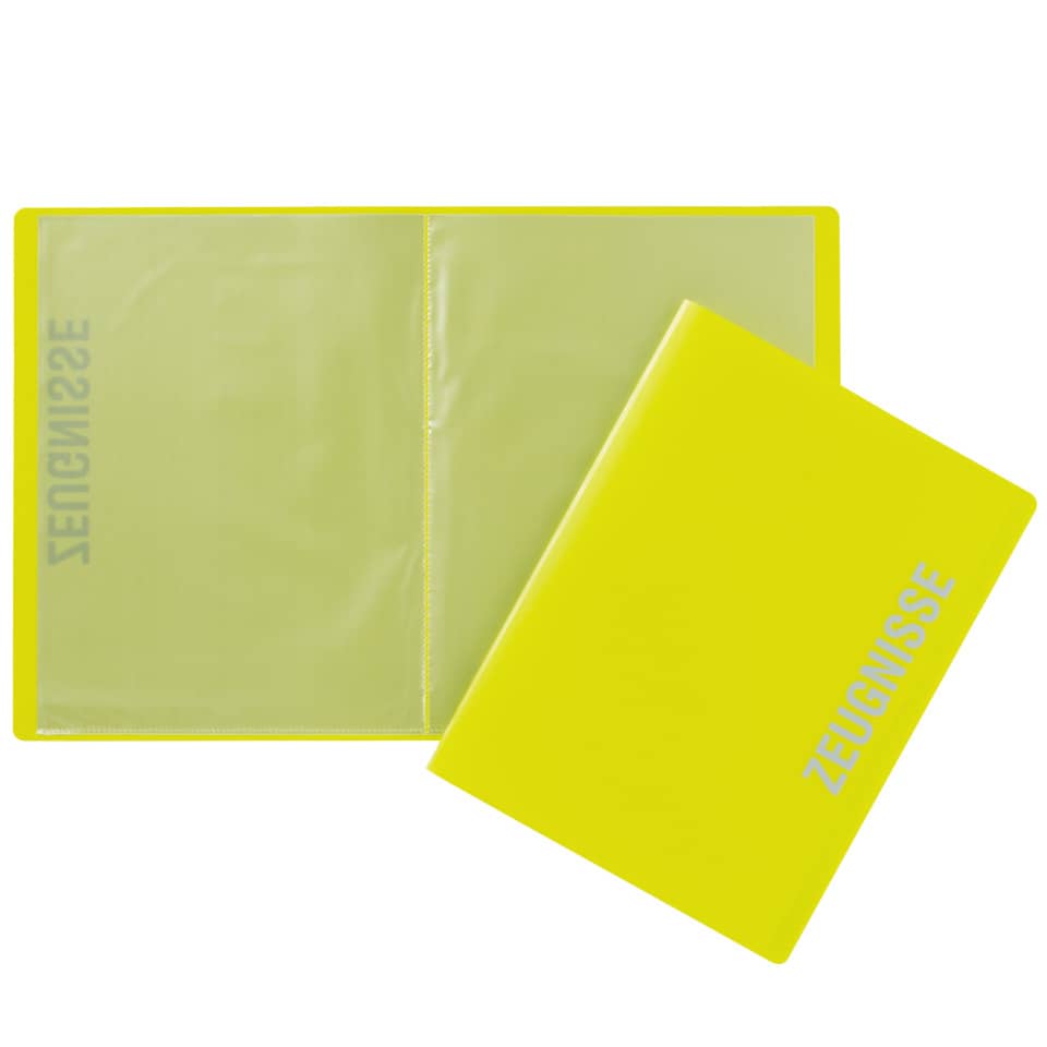 Zeugnismappe PP für Dokumente im Format A4, lindgrün mit 10 Sichthüllen aus langlebigem PP mit Aufdruck Zeugnisse.