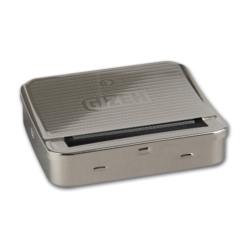 Diese Rollbox aus Metall ist ein Zigarettenwickler und Tabaksdose in einem. Selbstgedrehte in 6mm und 8mm können gefertigt werden. Zigaretten-Rollbox GIZEH Metall